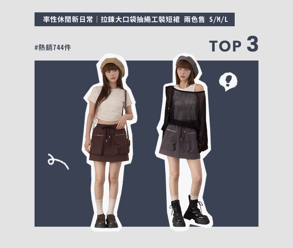 03010883 下擺抽繩造型工裝短裙 三色售 S/M
