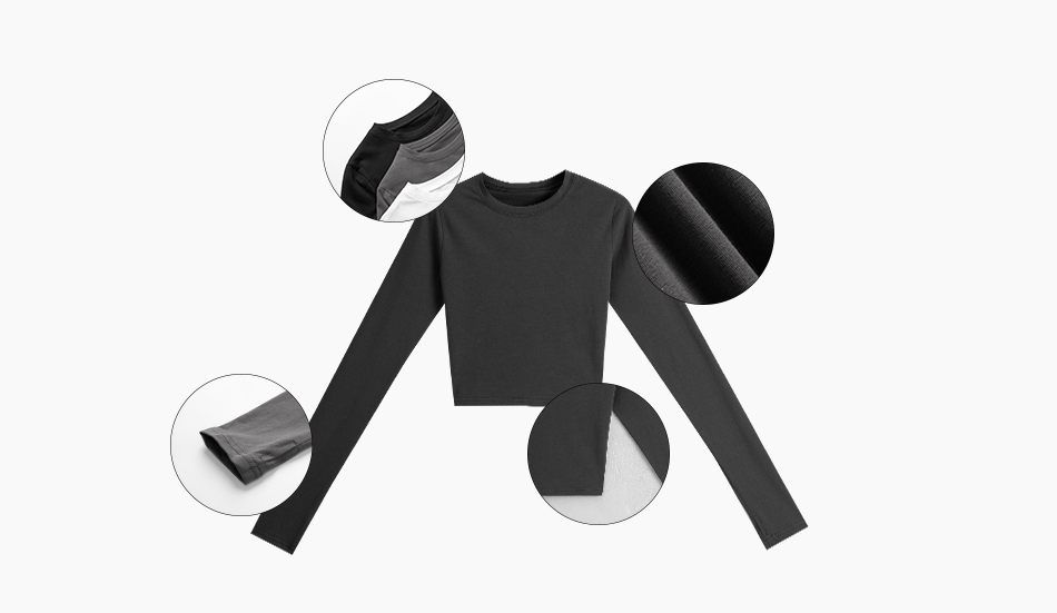 圓領雙壓線增添俐落感,袖口指洞設計提升層次與造型亮點